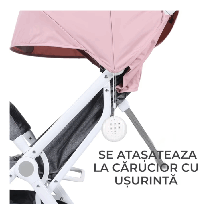 DIMENSIUNI REDUSE ȘI PORTABIL : 93mm x 80mm x 28mm, ușor de transportat în geanta pentru bebeluș, cărucior pentru copii. Ideal pentru a-ți scoate copilul la plimbare sau în călătorie, menținându-l relaxat. Cu ajutorul curelei , puteți agăța dispozitivul de pătuțuri, cărucioare sau mâna părintelui când ține copilul în brațe.