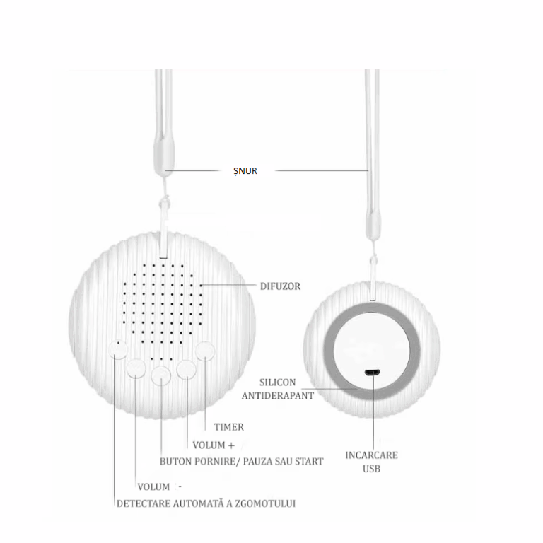 Dispozitivul de sunete albe blochează zgomotele puternice și creează un mediu favorabil, oferind cea mai bună ambianță pentru somn.